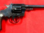 32845- 1938 COLT OFFICERS MODEL .22 TARGET REVOLVER. Overall great condition with little use. Draglines are hardly there. With 6” barrel. Markings are crisp and easy to see. Excellent bore and 90% blueing on barrel, and 85% on frame. Original grips are in great condition with no hairline cracks. No screws have been messed with. Features Pachmayr grip addition. Functions perfectly. $1050