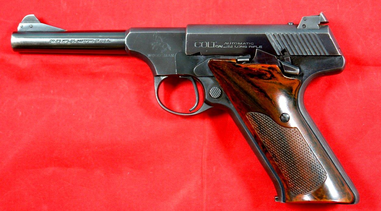 32956- COLT WOODSMAN 2nd (S) SERIES SPORT MODEL.22 LR .22LR WITH 4.5” BARREL CIRCA 1949. This little handgun is in good shape with a few minor blemishes. It locks up tight and has a good bore. Adjustable rear sight. With 4.5” barrel and original magazine. $1200