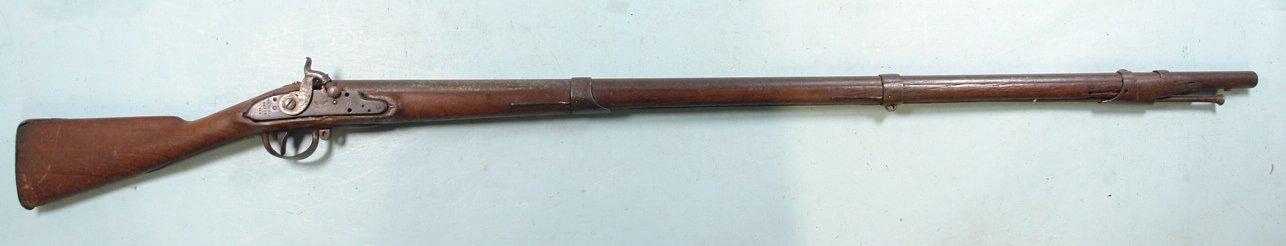 33088- CONFEDERATE CSA USED CIVIL WAR HARPERS FERRY PERCUSSION CONVERSION FLINTLOCK MODEL 1795 MUSKET CIRCA 1860-61. Over 60K obsolete flintlocks of various types converted by Virginia before and during the war. 44” smoothbore .69 caliber barrel with Ordnance proofs (V/P/EAGLE HEAD) at left breech. Lock stamped behind hammer “HARPERS/FERRY/1814” and with “U.S./FEDERAL EAGLE” in front. War used with old dark patina on metal. Stock with the original heavily worn finish with old repairs and dings. Semi-relic condition original that has lots of character. Has seen many battles and campaigns. Original ramrod. $950.