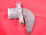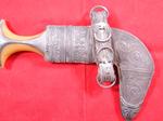 31886-SILVER MOUNTED OMANI JAMBIYA CIRCA EARLY 1900’S. 10” o/a with 6” blade. Hand engraved silver scabbard and mounts. Horn grip. Excellent overall. $200.
