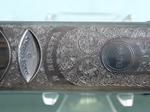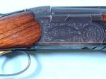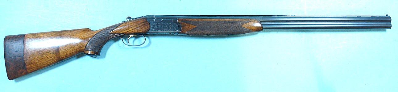 32857- BERETTA BL-4 BL4 OVER/UNDER 20 GA. SKEET SHOTGUN. 26” barrels originally choked Skeet 1 & Skeet 2 now with Briley skeet inserts. Single trigger/selective auto safety and auto ejectors. Checkered walnut stock and forend ( 12”pull over original wood, 14 ½” over added wood extension. Very good overall with the original blue with light use. Original finish on wood. Tight working order and excellent bores. With leather slip on recoil boot and Beretta carry case. Reasonably priced $950.
