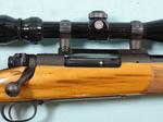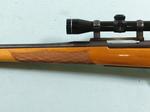 33007-PRE-64 WINCHESTER MODEL 70 CUSTOM .257 WEATHERBY MAGNUM CALIBER RIFLE MFG. 1957 W/SCOPE. Custom 26” barrel w/o sights. Receiver in original factory finish. Floor plate refinished as well as bolt handle. Custom diamond checkered/scroll panel pistol grip, cheek rest stock with finely checkered steel butt plate (non-factory). Near mint as customized with nearly all the metal and wood finish. Almost unused in tight working order and mint bore. Tasco 2X7 scope with crosshairs as new condition. $1750.