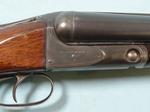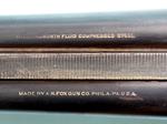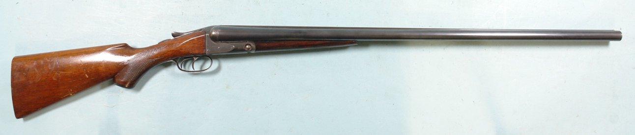 33016- EARLY A.H. FOX GUN. (PHILA) STERLINGWORTH 12 GAUGE SIDE BY SIDE 30' SHOTGUN, CIRCA 1911. 2.75" chambers and choked full and full. Original with missing butttplate and reblued and wood with extra coat of varnish. 1.5" and 2.5" drop. 13.5" LOP over bare wood. Wood with minor dents overall and hairline (2") now repaired crack on leftside panel and small toe chip. Excellent tight working order and bright bores. Nice tight Sterlingworth which is really brought back to life with pad or plate. $595