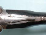 33048- ANSLEY H. FOX, PHILADELPHIA A GRADE 12 GAUGE SIDE X SIDE 30” SHOTGUN W/EXTRA MATCHING SET OF 26” BARRELS NUMBERED TO GUN. MFG. 1908. Both sets of barrels (Krupp) with 2 ¾” chambers. 30” set choked Modified and Modified. 26” set choked Improved Cylinder and Modified. Double triggers, auto safety and extractors. Frame engraved on both sides “ANSLEY H. FOX”. Serial in the 8xxx range and matching. Original wood with semi-pistol grip checkered butt stock with hard rubber original butt plate. 1 ½”, 2 ¾” drop. 14” pull. Very good overall with moderate wear. Frame medium grey patina. Barrels with approximately 90% blue. Excellent bores. Tight working order. Priced reasonably and it still has a lot of shooting left in it. $1450.