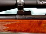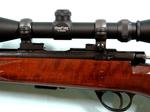 33049- ANCHUTZ MODEL 1710 BOLT ACTION .22LR RIFLE W/SCOPE. 24” barrel. 5 round mag. Deluxe fancy walnut checkered pistol grip stock. Near new with all the original finish. A few pinhead size storage nicks in varnish. Looks unfired. Perfect working order and mint bore. Burris Rimfire 3x9 crosshair scope with caps in perfect condition. $2300.