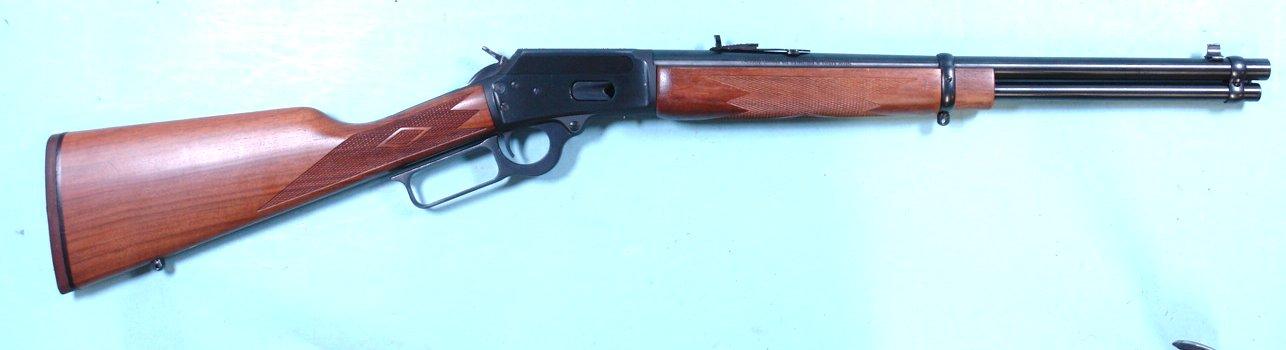 33135- MARLIN MODEL 1894 CS LEVER ACTION .38 SPL. & .357 MAG. CARBINE. 18” barrel w/full length magazine. Fancy diamond checkered walnut stock and forend. Near new and unfired. Mint bore and perfect working order. $1,350