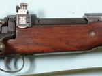33023- EDDYSTONE U.S. MODEL 1917 SPORTER .30-06 CAL. BOLT ACTION RIFLE. 26” original barrel with ramp front sight added. Redfield receiver sight added. Original altered G.I. stock. Excellent overall with lightly to moderately worn original blue. Tight working order and fine bore. Stock excellent. WW2 web military sling. $350.