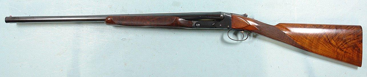 32981-PRE-WAR WINCHESTER MODEL 21 TOURNAMENT SKEET 12 GAUGE 26” EJECTOR SIDE X SIDE SHOTGUN MFG. 1935. Serial number in the 3xxx range all original and matching. Choked skeet and skeet. 2 ¾” chambers. Single selective trigger and auto safety. Straight grip checkered deluxe walnut stock with 1 ½”, 2 1/2” drop and 14” pull. Checkered beavertail forend. Underside of frame stamped “TOURNAMENT/SKEET” Excellent plus to near mint with only the trigger guard tang with any blue wear. Has all the original wood finish. Tight working order and mint bores. Rare all factory original Pre-War Tournament Skeet Model 21. PENDING SALE