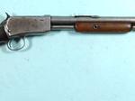 32897- WINCHESTER MODEL 06 PUMP 22 S,L,LR CAL. RIFLE CA. 1909. 20” barrel with original bead front and 1901 patent screw elevator rear missing the elevation screw. All original except the hard rubber butt plate an old replacement and the barrel which is a factory replacement with circled “P” proof to the rear of the Smokeless Proof stamp at top breech of barrel. Very good with minor amounts of blue in recesses of barrel and tube with balance a grey worn patina. Wood with wear and old handling patina. Tight working order and excellent bore. SOLD- Call for sale price.