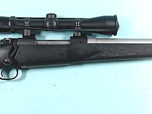(SOLD)- KIMBER MODEL 84 BOLT ACTION .223 REM. CAL STAINLESS & BLUE RIFLE W/REDFIELD 3X9 SCOPE.