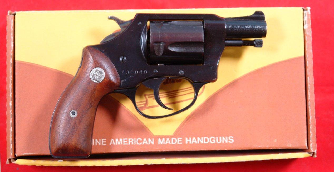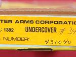 33147- CHARTER ARMS CORP. UNDERCOVER MODEL 1382 .38 SPL. CAL. REVOLVER W/ORIG. BOX. 5 shot double action revolver with 2” barrel. Excellent plus with 99% blue and finish on the walnut original grips. Perfect tight working order and mint bore. Original box serial numbered to gun. Has seen very little use. $225.