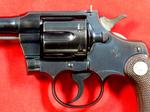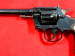 32845- 1938 COLT OFFICERS MODEL .22 TARGET REVOLVER. Overall great condition with little use. Draglines are hardly there. With 6” barrel. Markings are crisp and easy to see. Excellent bore and 90% blueing on barrel, and 85% on frame. Original grips are in great condition with no hairline cracks. No screws have been messed with. Features Pachmayr grip addition. Functions perfectly. $1050