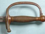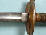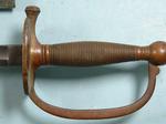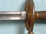 32010- CIVIL WAR EMERSON & SILVER, TRENTON, N.J. U.S. MODEL 1840 NON-COMMISSIONED OFFICER’S SWORD AND SCABBARD DATED 1863. 38” o/a with32” blade Ordnance inspected and dated on ricasso “U.S./D.F.M./1863” with reverse stamped “EMERSON & SILVER/TRENTON/N.J.”. Superior condition with near mint unpolished brass hilt and blade with much original polish mixed with patina. Nickel plated steel scabbard with Ordnance inspector’s stamp (D.P.H.) on drag with the reverse number stamped “59” a possible unit number. Superior condition and scarce original metal scabbard. $750.