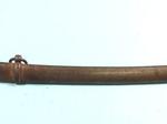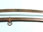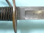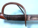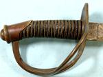 33107- CIVIL WAR P.S. JUSTICE / PHILADELPHIA U.S. MODEL 1840 HEAVY CAVALRY SWORD AND SCABBARD. 43” o/a with 36” blade stamped on ricasso “P. S. JUSTICE/PHILADA”. All original in superior plus original untouched condition. Brass hilt with dark umber patina. All the original leather grip wrap and brass retaining wire. Blade with most of the original polish with minor handling patina and original washer. Extra nice dent free scabbard. Best Justice we have seen. $2200.