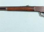 31707- MARLIN MODEL 1891 2ND SECOND VARIATION .32RF OR CF LEVER ACTION RIFLE CIRCA 1893. 26” octagon barrel with full length magazine tube. Elevator rear and bead front sights. All original and very good plus overall. Checkered walnut pistol grip stock and forend. Fires either .32 rim fire or .32 centerfire long cartridges. Approximately 50% blue and even brown patina mixed finish. Stock and forend with moderate wear. Working order and good bore with well- defined rifling. $750