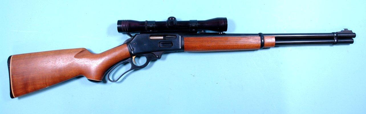 31804- MARLIN MODEL 336 LEVER ACTION .30-30 CAL. CARBINE CA. 1975 WITH REDFIELD SCOPE. Extra nice near mint with all the blue and wood finish. Close to new with mint bore. Looks unused. Redfield Widefield 4X scope in Weaver mounts with perfect optics. Hard to find this nice. $725