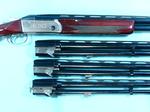 32582- KRIEGHOFF K80 K-80 (SHOTGUNS OF ULM) 4 BARREL SET 28” SKEET SHOTGUN SET 12 GA/ 20 GA/ 28 GA/ .410 GA WITH CASE BELONGING TO U.S. SHOOTING TEAM MEMBER. All barrels are numbered to the receiver, 28” length and have a nice vent rib and blaze orange front bead with small mid bead. All fixed skeet choke. Factory nickel-plated receiver is marked “K-80 Shotguns of Ulm” and has working safety. Slight nickel loss on edge from use over the years. Cherry stock is nice with a few small dings and has a 14.25” length of pull over rubber pad. Comes with tough aluminum case to carry everything. Perfect set for a skeet shooter, and was previously owned by member of the U.S. shooting team.
