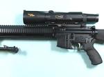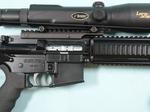 32946-LES BAER CUSTOM 6.5 GRENDEL CAL. AR 15 AR15 HEAVY BARREL SEMI-AUTO HEAVY BARREL MATCH RIFLE W/SCOPE. 20” match grade barrel. Folding bipod and magazine. Burris Laser scope. New unused condition overall. Looks unfired. Scope in perfect working order. With carry case and 4 magazines. $2700.