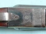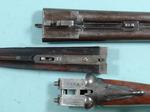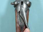 32971-W. W. GREENER EMPIRE GRADE 10 GA.-30” DAMASCUS BOXLOCK SIDE X SIDE SHOTGUN CIRCA 1890’S ANTIQUE. 3” chambers. Choked Improved Cylinder and Modified. Double trigger, no safety and extractors. Moderate wear overall with 50-60% Damascus finish on barrels and frame with silvered case hardening. Scroll engraved frame and mounts. Original walnut checkered forend and un-checkered replacement butt stock without butt plate. 15” pull. 1 ½”, 2 ½” drop. Tight working order and good bores. $550.