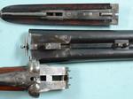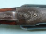 32989-W.W. GREENER MODEL M PIGEON 12 GA. 2 ¾”-30” EJECTOR SIDE X SIDE SHOTGUN MFG. 1899. All original with Hawkins recoil pad added. 1 ½”, 3” drop. 14 ¼” pull. Auto ejectors, Greener Side Safety, Greener Cross-bolt. Double triggers. Barrels choked Full & Full. Factory engraved with fine scrolls on frame and mounts. Pigeon engraved at base of barrel rib. Excellent overall and very tight. Excellent working order and bright bores. Stock with 1” butt section replaced with the original piece and hard to tell. Barrels with nearly all the blue and frame with darkening case hardening colors. Very crisp Greener Pigeon Gun. $2700.