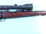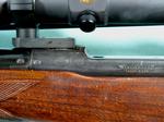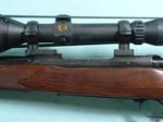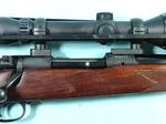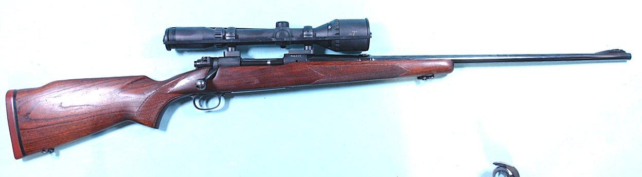 33042- PRE-64 WINCHESTER MODEL 70 MAGNUM .338 WIN. MAG. CALIBER RIFLE MFG 1957. 26” barrel with factory front ramp with sights removed for scope. All original with 99% blue and stock finish. Factory ‘WINCHESTER” solid recoil pad. Mint bore and tight working order. Burris Black Diamond 2.5X10 scope and mounts. $2700.