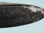 31714- WINCHESTER MODEL 59 MOD. 59 LIGHTWEIGHT SEMI-AUTO SHOTGUN IN 12 GA WITH 28” WIN-LITE BARREL. Features the Win-lite fiberglass barrel. Roll engraved on either side. 2 ¾“ chamber. Plain walnut wood with 14” length of pull over factory butt plate. Modified choke. Alloy receiver makes it especially light and fiberglass wrapped barrel. Good spring and functions very well. Slight finish loss on forend on right side- factory laquer only and goop from slip on pad accumulated at butt will clean to nil. Will clean up nicely. $525