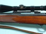 33001- PRE-64 WINCHESTER MODEL 70 SUPER GRADE .243 WIN. CAL. RIFLE MFG. 1956 WITH SCOPE. Original factory barrel professionally shortened to 22” with sights removed. Bolt handle polished and White Line recoil pad added. Otherwise all original excellent with 98-99% original blue and stock finish. Mint bore and perfect working order. Crosshair Bushnell Scope Chief 6X scope in Williams mount. Factory QD swivels and period leather sling. $1900.