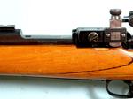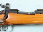 33026- 1949 PRE-64 WINCHESTER MODEL 70 CUSTOM HEAVY BARREL .308 WIN. MATCH RIFLE. 26” Dunlap barrel with globe insert International Match front sight and International Match Lyman receiver sight. Scope blocks. Factory trigger w/shoe. Custom laminated wood stock with hard rubber butt plate and adjustable match aluminum forend combination stop/swivel. Near new with all the custom blue on barrel and nearly all the factory blue on receiver. Tight working order and mint bore. Has all the finish on stock looking little used. $1750.