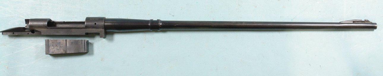 33053- 1949 PRE-64 WINCHESTER MODEL 70 .30-06 CAL. BARRELED ACTION. 24” barrel. Factory original receiver and barrel. Ramp front sight platform and no bead. No rear sight. With magazine well. Receiver with side mount tap holes (with screws). Approximately 97-98% original blue and excellent plus bright bore. $200.